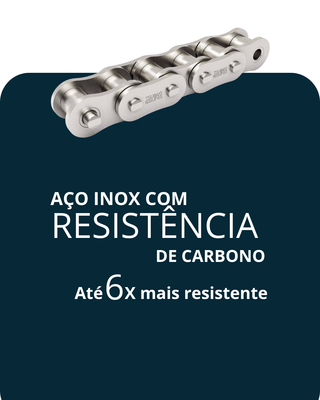 A corrente Super Inox vai além das vantagens do inox tradicional, com componentes e placas laterais reforçadas que proporcionam maior resistência ao desgaste e alta força mecânica.