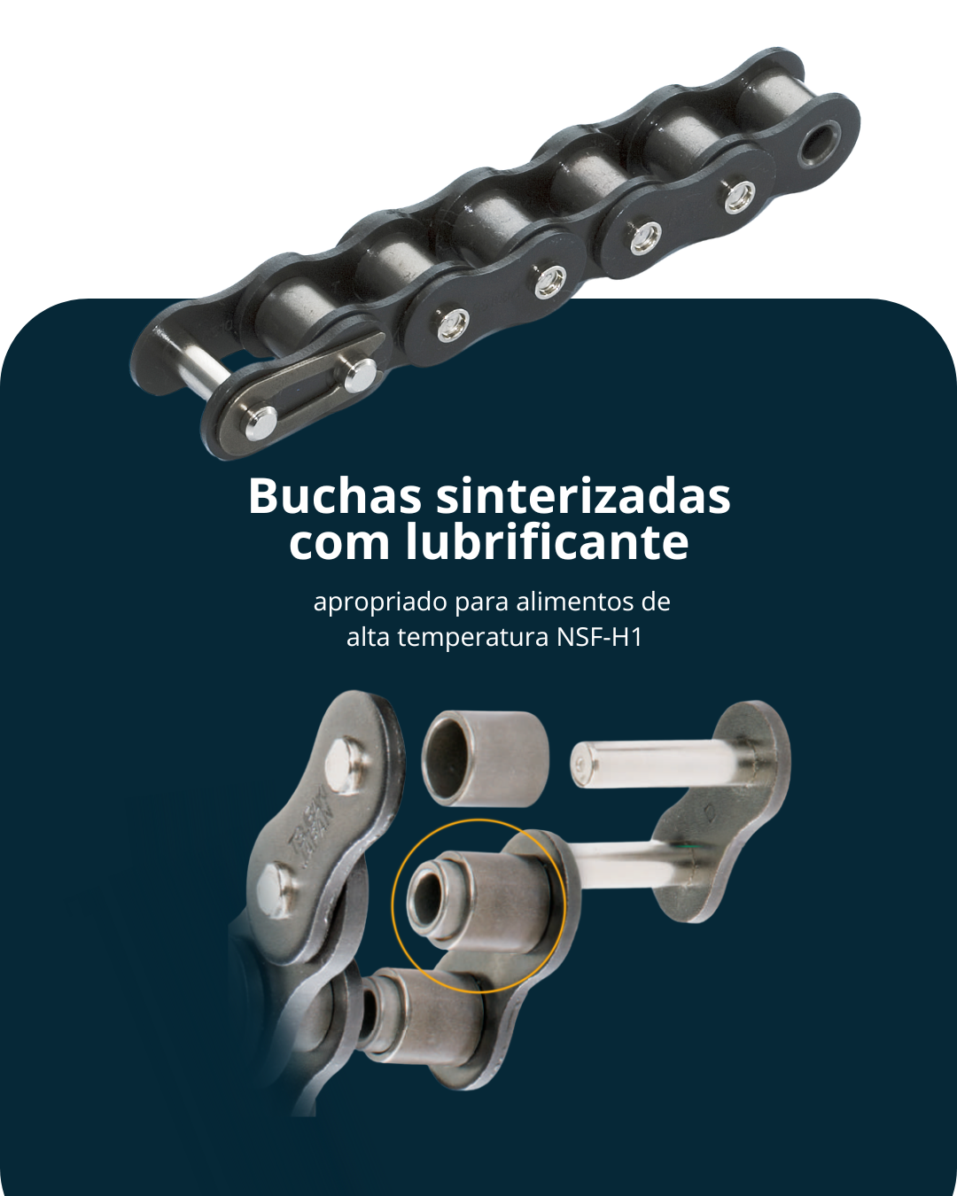 corrente autolubrificante Lambda é ideal para aplicações onde o uso de óleo é impraticável ou indesejado. Operando sem lubrificação adicional, ela reduz o risco de contaminação e aumenta a confiabilidade do equipamento.